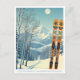 Hello from the snowy mountains of Camelback Mountain, Pennsylvania USA! We hope you're having a wonderful ski vacation. This postcard features a gorgeous blue-grey mountain landscape with retro ski boards in an orange tribal pattern.