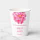 Personalize these pretty pink floral wedding paper cups with your own couple's names and wedding or event date. Useful wedding cups in spring or for a pink floral themed wedding, ideal for outdoor or party drinks or to hold freeze dried rose petals or paper confetti. © Original camellia pink floral painting and design by Sarah Trett www.sarahtrett.com for www.mylittleedenweddings.com