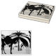 This clipart features 2 camels in the desert near some palm trees.