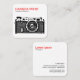 A modern square business card with a high contrast Russian camera motif. Suitable for a variety of businesses. Ready to be customized. The company name is on the front with name and contact details on the reverse side.