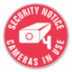 Camera Security Warning video surveillance notice vinyl stickers. Create your own unique personalized stickers. Simple logo sign design for security business, secure parking, school, shop, store, office center, restaurant, bank, corporate company, mall, wedding event, entrance, business, warehouse, airport, garage, storage facility, hospital, public building, zoo etc. Modern typography template. Make custom monitoring signs to stop trespassers, employees, staff, personnel, clients, visitors, guests, drivers, walkers, violators, offenders, criminals etc. Also handy to stop loitering, soliciting, entering premises, safety zone, access control and more. Upload your own logo optionally. Private Property No Trespassing, do not enter, no entry warning sign with WiFi or CCTV camera in use icon. Red or custom color.