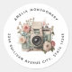 Camera with Flowers Retro Pastel Image - Address Classic Round Sticker