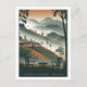 A serene and nostalgic depiction of the Cameron Highlands, a lush hill station in Malaysia known for its cool climate, tea plantations, and verdant landscapes. The design captures the sweeping views of terraced tea fields, misty mountains, and charming colonial-era buildings nestled among the greenery. Rendered in a vintage style, the artwork evokes the tranquil beauty and timeless charm of the Cameron Highlands, inviting viewers to explore its scenic tea gardens, nature trails, and serene atmosphere.