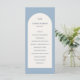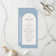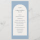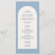 Modern wedding program featuring your monogram along with your order of ceremony and wedding party inside of an ivory colored arch over a dusty blue background. This simple yet elegant design with muted colors can be great for a spring, summer or winter wedding.