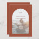 Plain white envelopes are included with paper invitations and will come to fit the invitation size you select. If you don’t need the envelopes, you may choose to not receive them by selecting the dropdown below "Envelopes" and choosing "None." If you’d like to have a design on your envelopes, you can browse all of these available envelopes to find the design that complements your Simple Rust Photo Boho Arch Modern Wedding Invitation.