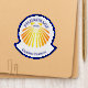 A customizable pilgrims scallop shell design in yellow and blue for your pilgrimage along the Camino Frances to Santiago de Compostela, easily change the text templates to personalize for your camino. The curvature of the text can be adjusted to fit your text.