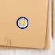 A customizable pilgrims scallop shell design in yellow and blue for your pilgrimage along the Camino Frances to Santiago de Compostela, easily change the text templates to personalize for your camino. The curvature of the text can be adjusted to fit your text.