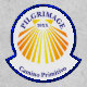 A customizable pilgrims scallop shell design in yellow and blue for your pilgrimage along the Camino Primitivo to Santiago de Compostela, easily change the text templates to personalize for your camino. The curvature of the text can be adjusted to fit your text.