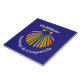 A great souvenir of your pilgrimage on the Spanish Camino Santiago de Compostela with this blue and yellow Scallop shell of St James. Customize with your own distance to Santiago,