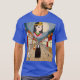 My 11 yo wore adult XL (5’7” 165#). The 8yo is small framed. She wore adult small and tied it in the back. Grandma wore adult large with long sleeve shirt underneath. Tall girl adult medium. Dark haired male adult large. Good quality dark Heather gray, Gildan brand shirt. -it was next up from basic choice and cost about $20 per shirt. Not too thick or thin. Washed and dried well, no major shrinkage. Not see-through. Can wear a bra under it fine. Screen print is just as shown and well done, front and back.