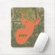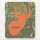 A mousepad featuring an illustration of an orange deer head over a camouflage background. Personalize with your name.