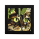 Wood and Tile box featuring Camo Kitty by wildlife and fantasy artist Michaeline McDonald of a cute kitty with big green eyes watching from behind green leaves. Nice gift for cat lovers!