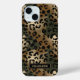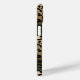 Customize this gold foil camo leopard print iPhone 15 case with your your name in a trendy modern CAP font in gold on black. It's so chic!