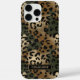 Customize this gold foil camo leopard print iPhone 16 pro max case with your your name in a trendy modern CAP font in gold on black. It's so chic!