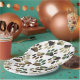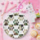A camouflage pattern dog paw print cartoon style. Military dog design. Custom paper plates.