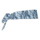 This tie back headband is shown in a multi blue color camo print.