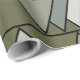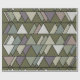 This wrapping paper has a mid-century modern design of overlapping triangles running horizontally in camo colors.