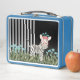 This delightful zebra, in a field of blue flowers, adorns the front of this lunch box. This whimsical design is perfect for adults and children. This lunchbox is available in seven colors, including light blue, shown here.