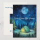 Modern Watercolor Happy Holidays! Camping Adventure Moon Pine Tree Starry Night Theme Holiday Christmas Card. Personalize with your message, name, year, and signature. Perfect for couples and families who love to explore the great outdoors and do adventures.