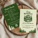 Camp bachelorette weekend invitation with itinerary back is a fun, outdoorsy invite designed for cabin retreats, mountain glamping, lake getaways, or national park adventures. The front showcases a retro camp badge illustration with mountains, pines, and a river in forest green on warm cream, with editable lines for the bride-to-be's camp name, year established, weekend dates, location, and the playful tagline “Last trail before the veil.” The back provides a ready-to-personalize weekend itinerary that organizes Friday through Sunday plans in a clear schedule, plus flexible space for cost notes, payment or contact details, and a scannable QR code that can link to Venmo or Cash App, gift registries, lodging info, or any website link. Styled in a modern-vintage camp aesthetic, this invitation suits low-key wilderness retreats and high-energy adventure weekends alike, and coordinates easily with matching signage, favors, and decor. Use it to set the tone for a weekend of hiking, kayaking, camping, winery tours, or boat days, and to keep guests on the same page before the trip. Clean typography make key details easy to read, while the cohesive green palette works beautifully with natural décor, cabin settings, and destination bachelorette themes. Personalize it to create a memorable keepsake that captures the spirit of a weekend in the woods. Available as printed cards or an instant digital download.