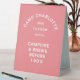Camp theme bachelorette, personalized pink table tent sign. Personalize with bride's name, the year of the camp theme bachelorette party/trip and location. The perfect decor / sign for a camp theme bachelorette party. Designed to match our Camp Bachelorette Green & Pink Collection.