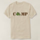 Tee shirt features an original marker illustration of a green tent, forming the A in the word CAMP.