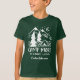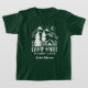 Create a unique custom t-shirt for your next family camping trip or outdoor excursion. Cute t-shirt for your young camper features the quote "camp more, worry less" in distressed white lettering beneath a hand drawn illustration of a camping tent set in a pine forest with a crescent moon rising over snow-capped mountain peaks. The perfect way to commemorate a special trip, or for anyone who loves camping, you can customize this camping shirt with your choice of text beneath the design. Add your camping destination, the year, name of summer camp, or a family name for a special touch.