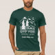 Create a unique custom t-shirt for your next family camping trip or outdoor excursion. Tee features the quote "camp more, worry less" in distressed white lettering beneath a hand drawn illustration of a camping tent set in a pine forest with a crescent moon rising over snow-capped mountain peaks. The perfect way to commemorate a special trip, or for anyone who loves camping, you can customize this camping shirt with your choice of text beneath the design. Add your camping destination, the year, or a family name for a special touch.
