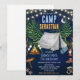 All text is fully customizable — personalize the camp name, birthday child's name, age, date, time, location, and special instructions like "Bring your sleeping bag & PJs." Printed on premium card stock for a polished finish.