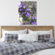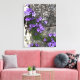 Campanula flowers growing from a crack in a wall. Blue flowers against a wall. Flowers canvas.
