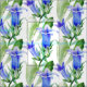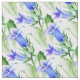Beautiful blue and green Campanula flower patterned fabric. Botanical repeat patterned fabric in shades of blue and green on a light background. Original watercolor painting by Sarah Trett.