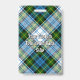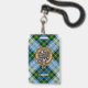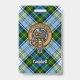 Campbell crest badge surrounded by a strap and buckle over dress tartan background. Custom text.
