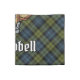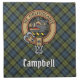 Campbell crest badge surrounded by a strap and buckle over tartan background. Custom text.