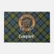 Campbell crest badge surrounded by a strap and buckle over tartan background. Custom text.