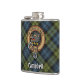 Campbell crest badge surrounded by a strap and buckle over tartan. Custom text.