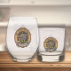 Campbell crest badge surrounded by a strap and buckle over tartan background. Custom text on both sides.