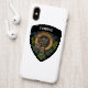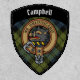 Campbell crest badge surrounded by a strap and buckle over tartan background. Custom text.
