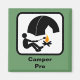 A fun fridge magnet design for a camping and outdoors lover, the Camper Pro shows a happy campfire scene with a tent in the background. Perfect for the camping mad man in your life, for a friend or just for yourself!