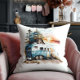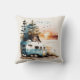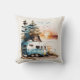 Decorator pillow with a camper on the beach at sunset. Personalize with your own text.