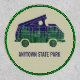 Create your own souvenir patch when you add your own custom text. This patch features an illustration of a camper fan with a popup tent on the roof and is illustrated to look like a moonlit night in the forest with a full moon in a star-filled indigo sky shining down on a grove of evergreen trees. Your own custom text appears below in blue lettering.