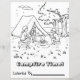 Cute coloring page with a with a camping theme. A family sitting around a campfire at their campsite just relaxing.