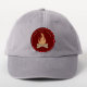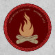 Create your own custom patch with the name of your favorite camping spot or other text. This round patch features a simple illustration of a campfire in orange and tan set against a maroon background with your message in tan lettering above.