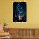 Campfire under a starry night sky in the serene poster