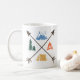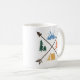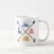 A cool design for adventurers, featuring a mountain, campfire, trees and tent with two arrows.