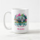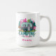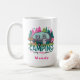 Discover your perfect escape with this Personalized 'Camping is My Happy Place' Mug! This whimsical design features a charming teal camper nestled among vibrant pink and green trees, complete with a cozy campfire and a sign pointing to lakes and hikes.