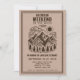 Each invitation is fully customizable with the groom’s name, party dates, location details, and RSVP info, making it easy to give guests everything they need in one stylish card. The earthy woodgrain background and hand-drawn design add a personal touch that feels just right for a weekend outdoors.