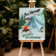 Camping themed welcome sign - perfect for one happy camper, sleepovers, backyard bbq, picnic or outdoor birthday party. This green and blue watercolor design has mountain and forest scenery with tent, campfire and smores. The title reads "Welcome to" and you can personalize the remaining wording.