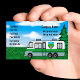 Camping business cards with image of a recreational vehicle and campgrounds, along with a great text layout you can customize.