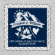 Cute camping couple patch featuring mountains and bonfire white silhouettes on a blue background, with the caption exploring together since in white lettering. Easily customizable by adding your names and text.