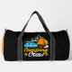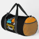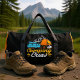 This black duffle bag is perfect for any camping enthusiast, featuring a charming design of a camper van parked next to a tent and a crackling campfire, with mountains in the background. The bold text "Camping Crew" makes it an ideal accessory for your next outdoor adventure or road trip. Edit color of the bag caps and body in the Design tool to your favored colors.